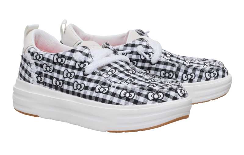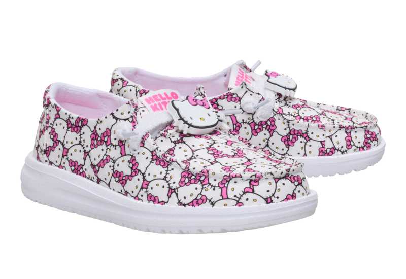 Diseñada para fanáticos de todas las edades, la colección presenta modelos irresistibles que fusionan los icónicos elementos de Hello Kitty, como su lazo rojo y estampados encantadores, con la ligereza, flexibilidad y soporte que distinguen a HEYDUDE. Desde materiales suaves hasta siluetas modernas, cada par está hecho para acompañarte durante todo el día, del salón de clases al recreo y más allá.