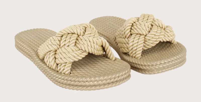 Sandalias tipo slide o con plataforma de yute.