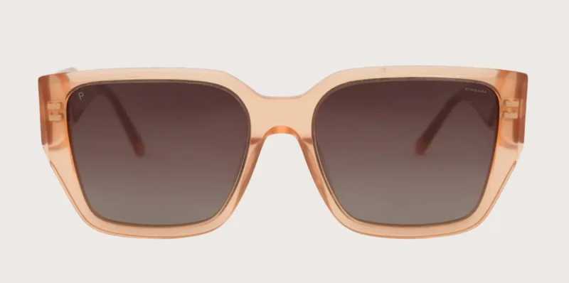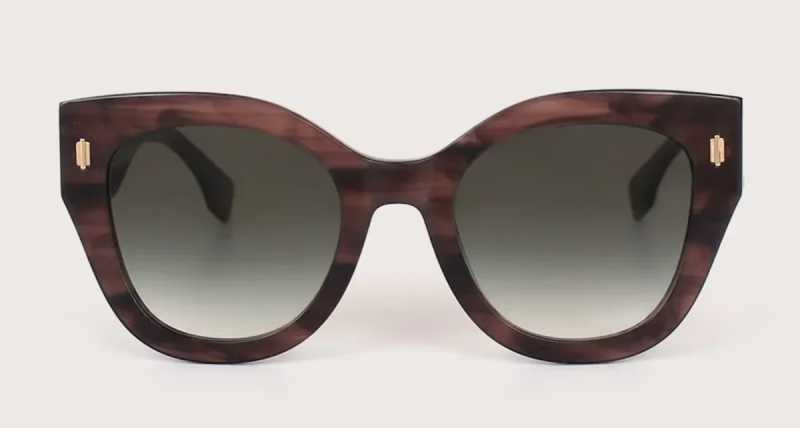 Lentes de sol estilo cat eye, marco cuadrado y cristales degradados.