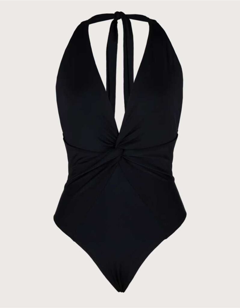 Minimalismo absoluto. Ideal para combinar con gafas bold, pantalón de red y sandalias negras de plataforma. Tu versión más sofisticada del beachwear.