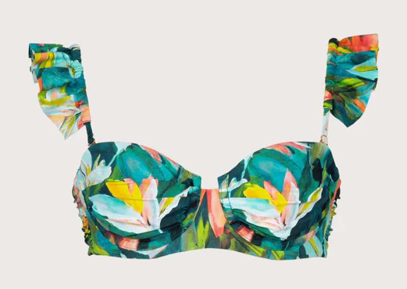Bikini corsetero con estampado floral vibrante
