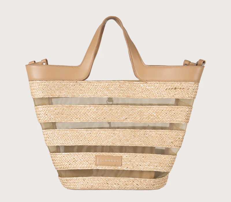 Bolsos de palma, asas de cuerda trenzada o bambú.