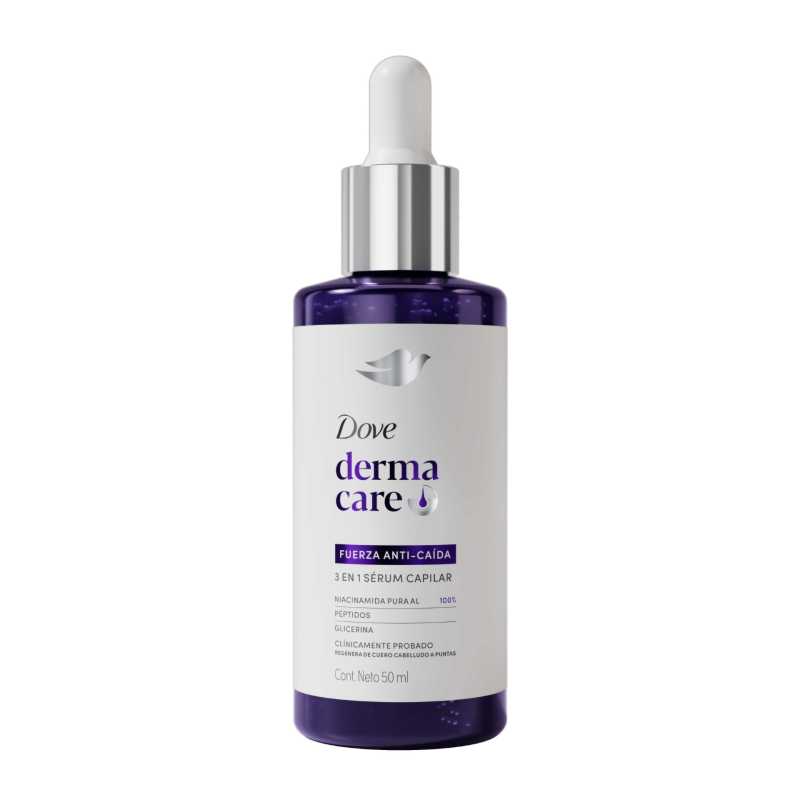 Dentro de esta línea destaca el Sérum Capilar Dove® Derma Care Fuerza Anti-Caída, un tratamiento avanzado de alta potencia que, gracias a su presentación en gotero, permite una aplicación precisa directamente en el cuero cabelludo.