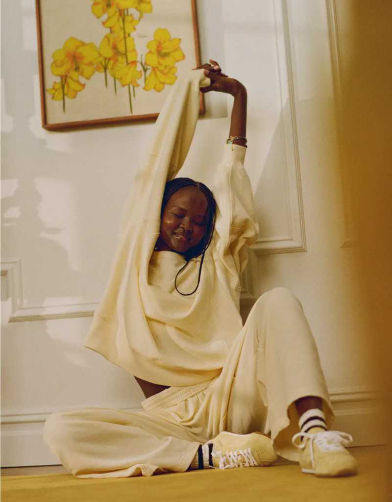 Quiero priorizar mi bienestar mental: Meditar, escribir, hacer journaling o simplemente tener una rutina contigo. Tu ropa también puede ayudarte a entrar en ese estado. 💫 Look Aerie: Set Loungewear calcetas cozy